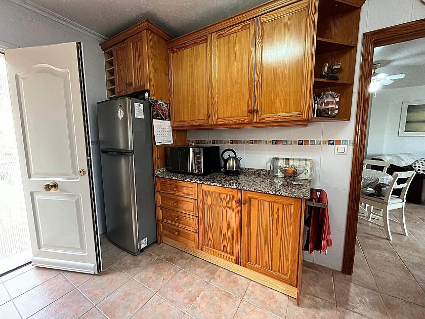 À l'intérieur, le salon-salle à manger lumineux s'ouvre sur une cuisine moderne entièrement équipée, avec accès direct au jardin.