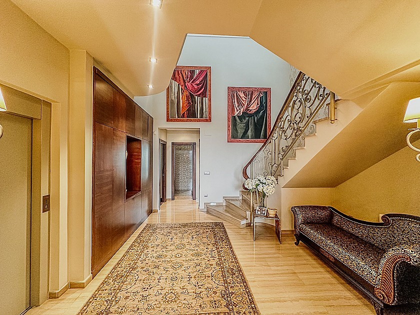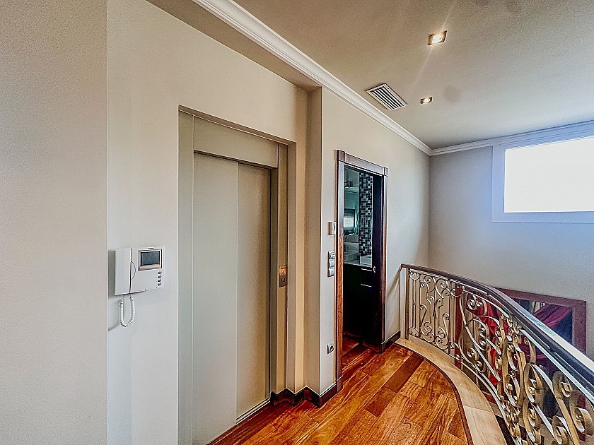 À l'intérieur, la propriété dispose d'un ascenseur qui facilite l'accès à tous les étages, garantissant confort et accessibilité à tous les résidents. Le sous-sol géant abrite une deuxième cuisine, une cave à vin et offre de la place à la créativité, soit comme espace de divertissement supplémentaire, soit comme salle de jeux.