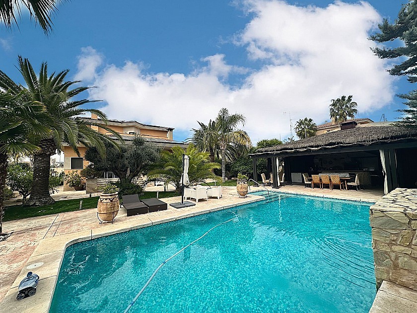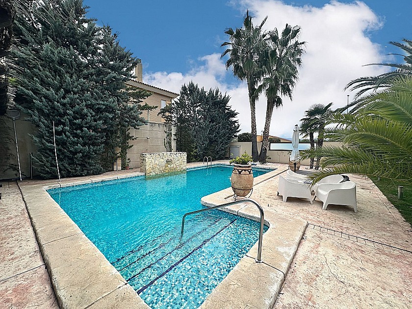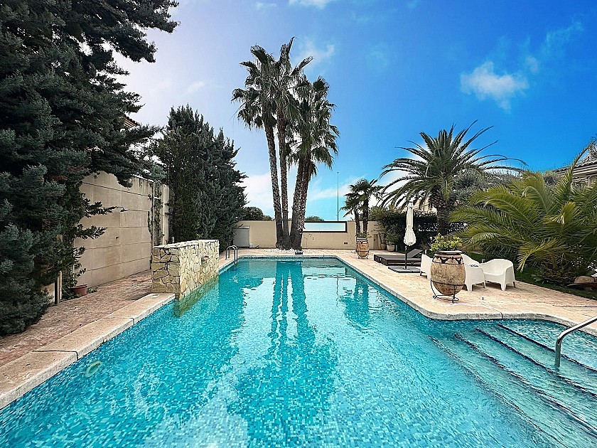 Le manoir dispose d'une piscine spectaculaire de 10 mx 5 m dans le jardin privé, entourée d'une végétation luxuriante et conçue pour profiter du climat méditerranéen. La terrasse de style tropical avec bar offre une atmosphère élégante et relaxante pour déguster des cocktails en plein air.