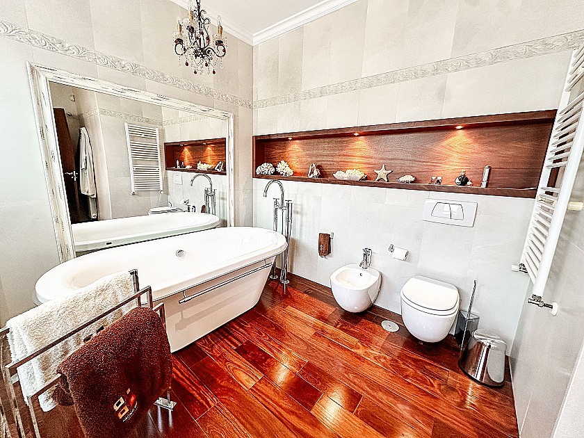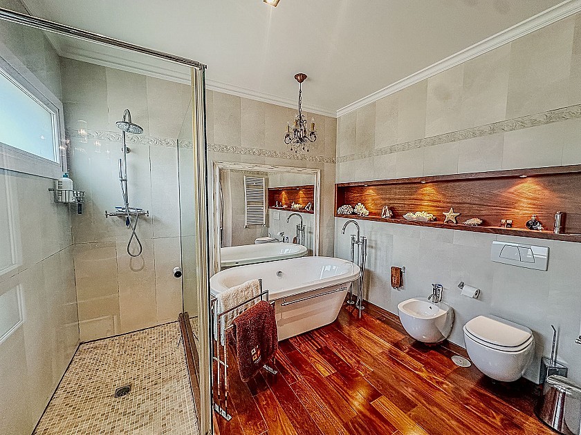 Chacune des cinq chambres est accompagnée de sa propre salle de bain, garantissant intimité et confort à tous les résidents. Le manoir est également équipé de la climatisation et du chauffage central dans tous les domaines, assurant un climat intérieur optimal toute l'année.