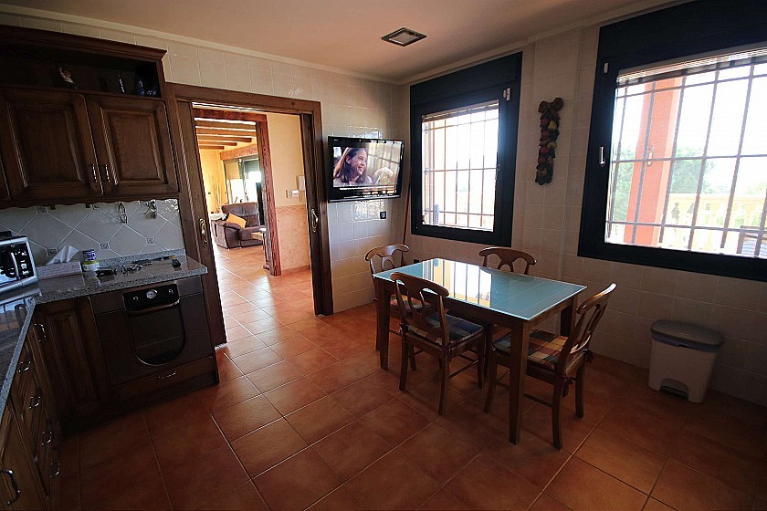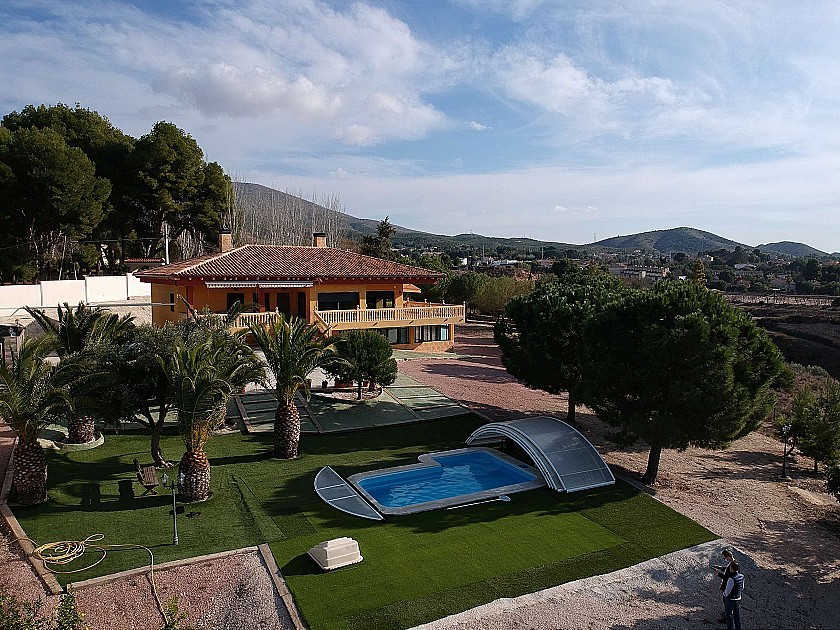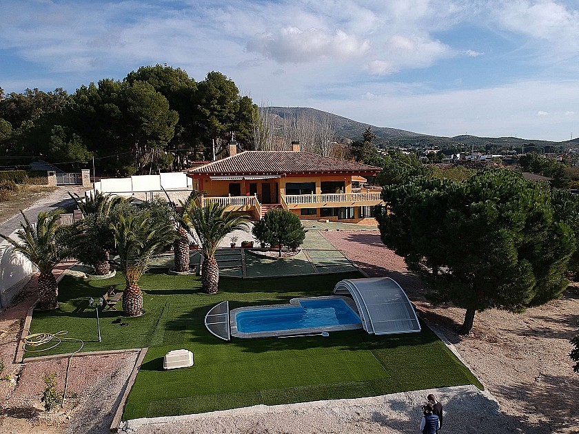 Grande villa individuelle avec piscine à proximité de la ville d'Elda/Petrer. Il dispose de 4 chambres, 2 salles de bains, un salon-salle à manger, une cuisine et une buanderie au rez-de-chaussée, et un grand sous-sol avec une salle de bains et une petite cuisine, et un potentiel pour plus de chambres, en tant qu'appartement séparé. A l'extérieur se trouve une belle piscine avec une couverture coulissante et entourée de gazon artificiel et de superbes vues. Construit en 2003. La taille de la maison est de 550m² et le terrain de 4200m², entièrement clôturé.