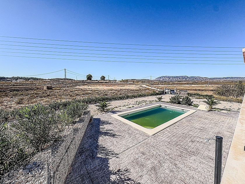 À l’extérieur, une magnifique piscine de 8 × 4 m complète ce cadre idyllique, entourée de paysages à couper le souffle. La propriété est facilement accessible, directement depuis une route goudronnée, et se situe à seulement cinq minutes du centre de Pinoso. Le village d’El Rodriguillo, accessible à pied, offre un restaurant/bar convivial idéal pour vos soirées.
