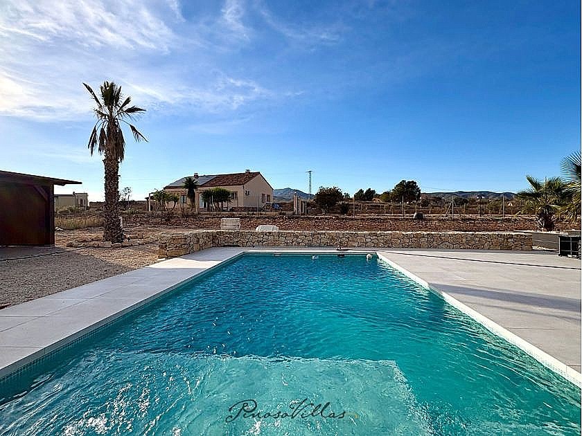 À l'extérieur, il y a une belle piscine de 8x4, idéale pour prendre un bain bien mérité pour se rafraîchir du merveilleux soleil d'été qui ne cesse jamais de briller ici en Espagne. Le terrain a 3000 m2 clôturé, des portails électriques à l'entrée principale, avec un abri voiture de bonne taille de 11x6 qui pourrait facilement être transformé en une fabuleuse cuisine extérieure. Il y a tellement de choses à faire avec l'espace extérieur, y compris avoir votre propre espace pour cultiver vos propres produits, planter de beaux arbres fruitiers, la liste est infinie.