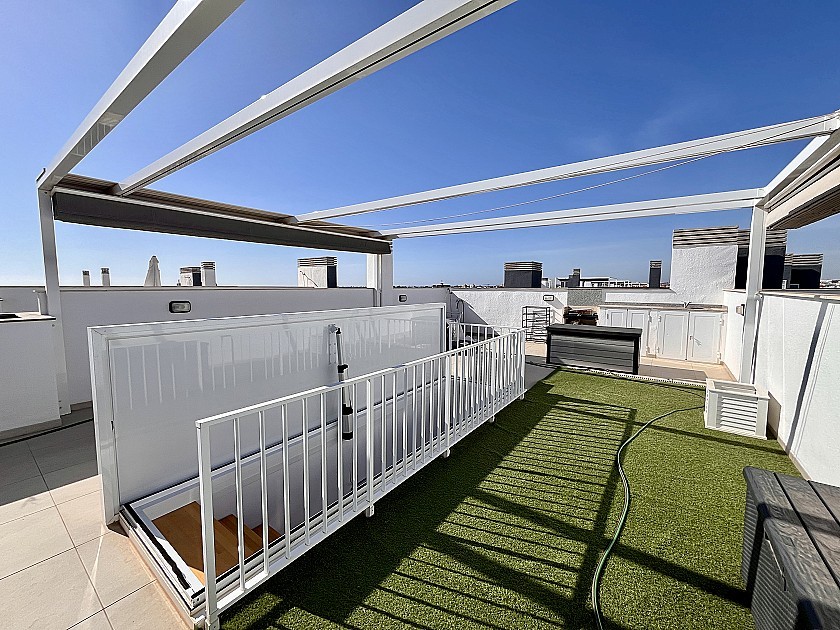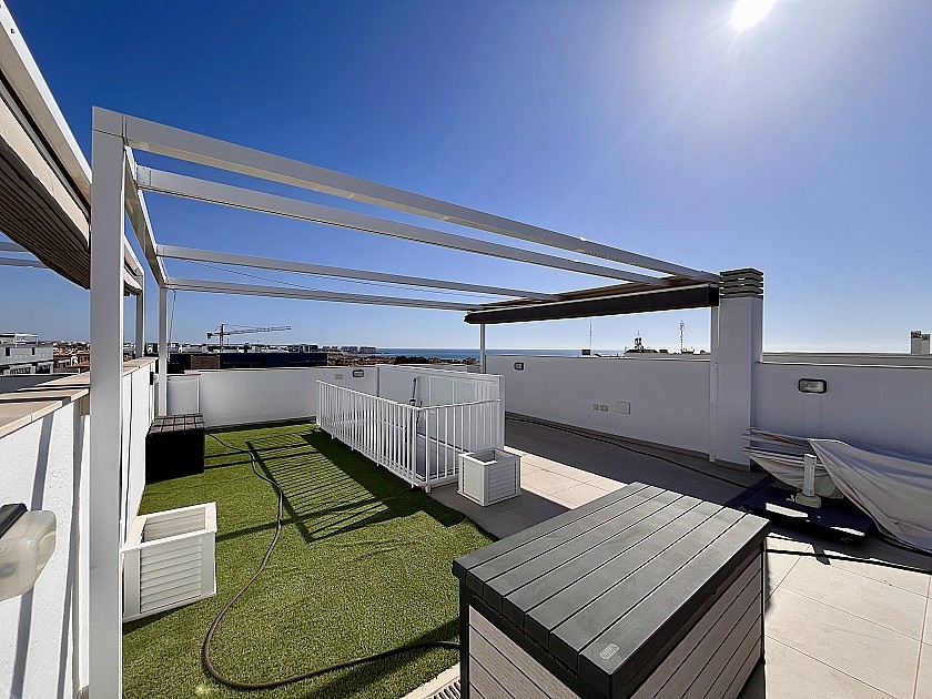 Superbe opportunité d'acquérir ce penthouse impeccable et bien présenté, clé en main, de 2 chambres et 1 salle de bain, à Flamenca Village, Playa Flamenca.