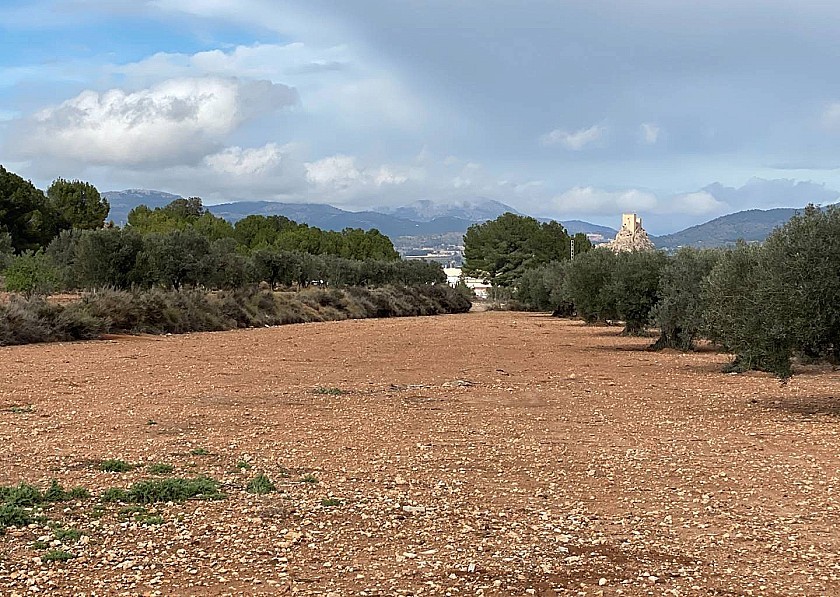 Le terrain est magnifique, mais non clôturé. Il est principalement plat et compte 52 oliviers. Chaque année, vous aurez assez d'huile d'olive de votre propre propriété pour y faire frire vos frites ! La vue est spectaculaire, notamment celle sur l'emblématique château de Sax, et la nuit, lorsque le château est illuminé, elle peut être époustouflante.