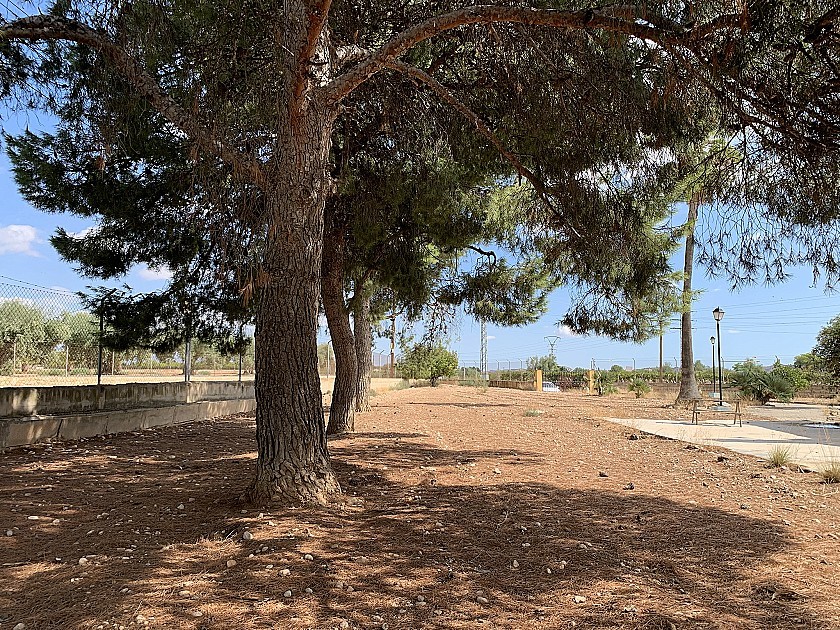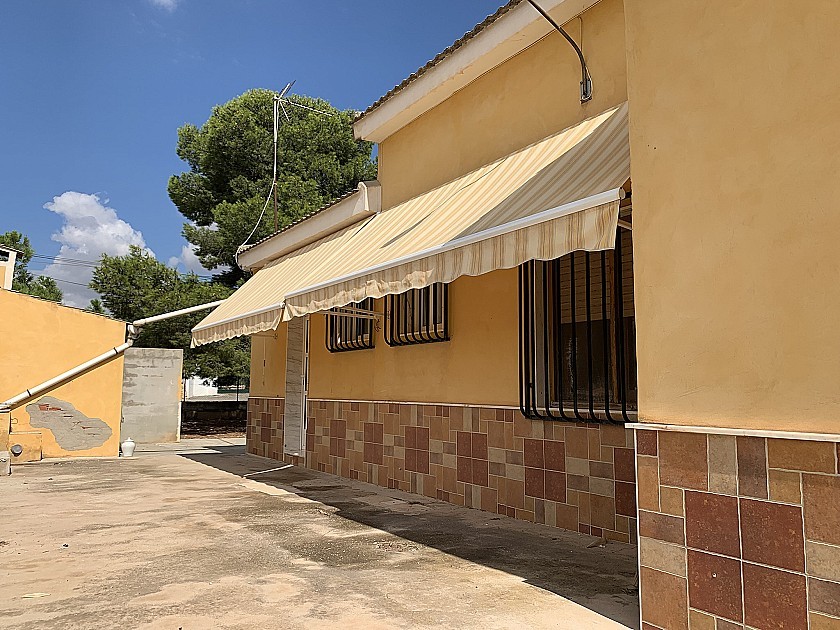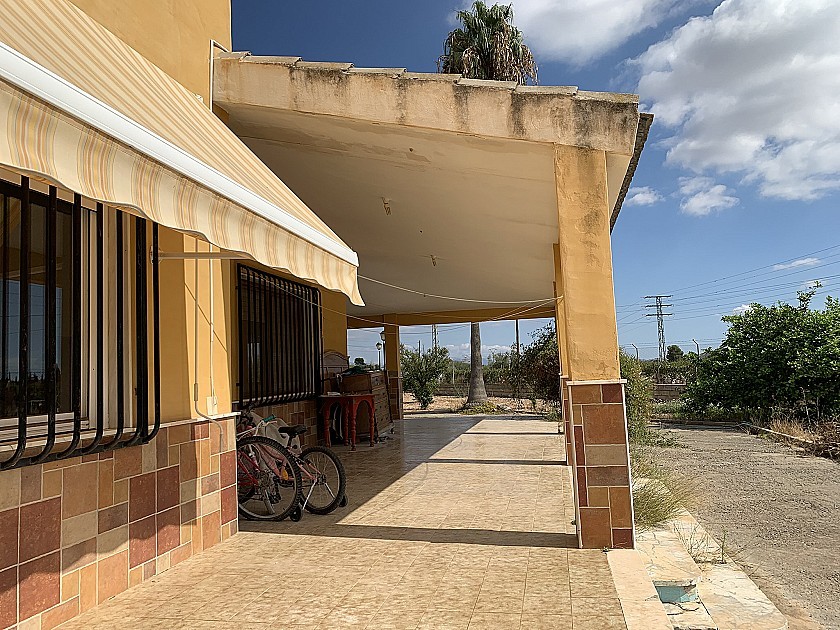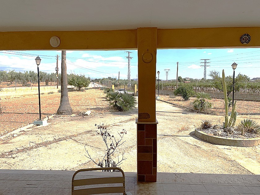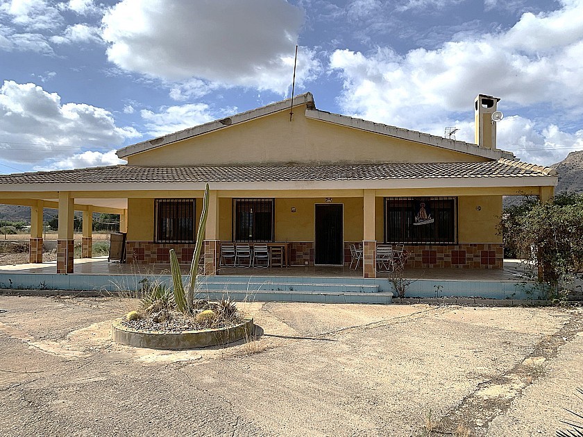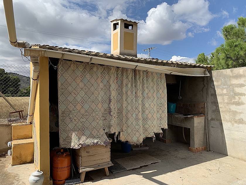 Het huis heeft een grote open woonkamer met een open haard en staat in open verbinding met de keuken, die via een deur aan de achterkant toegang geeft tot de barbecueplek. Aan het einde van de gang bevinden zich vier ruime slaapkamers, allemaal met inbouwkasten, en twee badkamers in de gang. Er is ook een extra toegangsdeur naar de zijkant van het huis. Aan de voor- en zijkant hebben we een enorm overdekt terras, waar u heerlijk kunt genieten van de zomerdagen met de broodnodige schaduw. Het perceel heeft een waterput aan de zijkant en een grote overdekte barbecueplek met een ruime kookruimte. Verderop, aan de achterkant van het huis, bevinden zich een kleine hondenkennel en een berging. Er is ook een elektriciteitstransformator in een ander klein gebouwtje, die u indien nodig een zeer hoog elektriciteitsverbruik kan bieden, bijvoorbeeld voor een camping/camperplaats of sauna's.