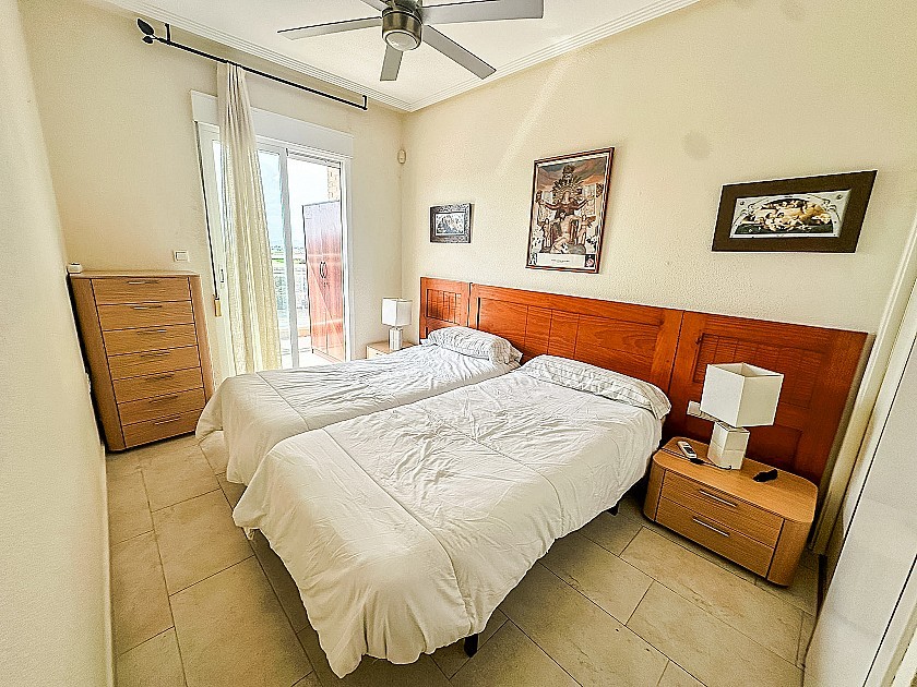 De woning beschikt over twee slaapkamers, maar er is mogelijkheid tot uitbreiding naar een derde slaapkamer. Beide kamers hebben een eigen balkon, zodat u vanuit uw comfortabele slaapkamer kunt genieten van het panoramische uitzicht. Bovendien garandeert een complete badkamer comfort en functionaliteit voor u en uw gasten, met de mogelijkheid om een 2e badkamer te maken.