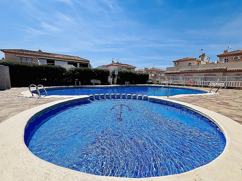 Deze charmante woning biedt een ruime voortuin, een groot privé-solarium en toegang tot een prachtig gemeenschappelijk zwembad. Perfect gelegen op loopafstand van het beroemde winkelcentrum La Zenia Boulevard, op slechts een paar minuten lopen van de populaire zaterdagmarkt en op slechts 10 minuten rijden van de prachtige stranden.