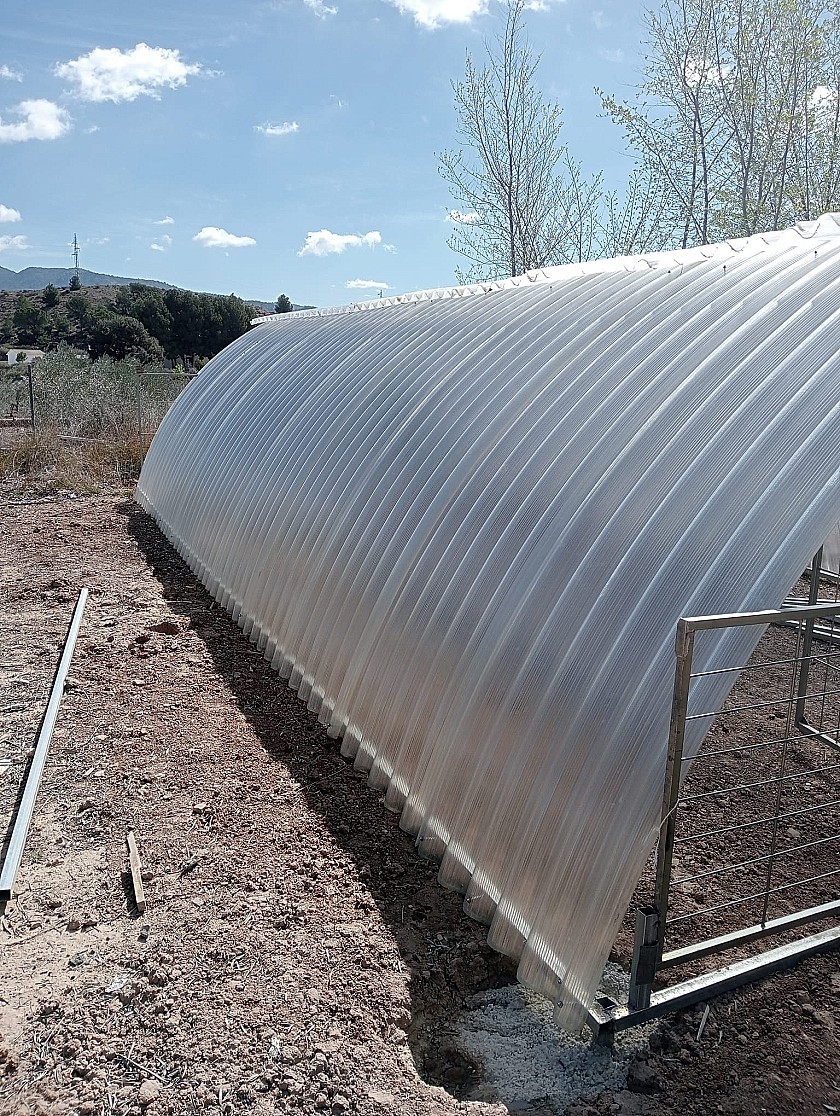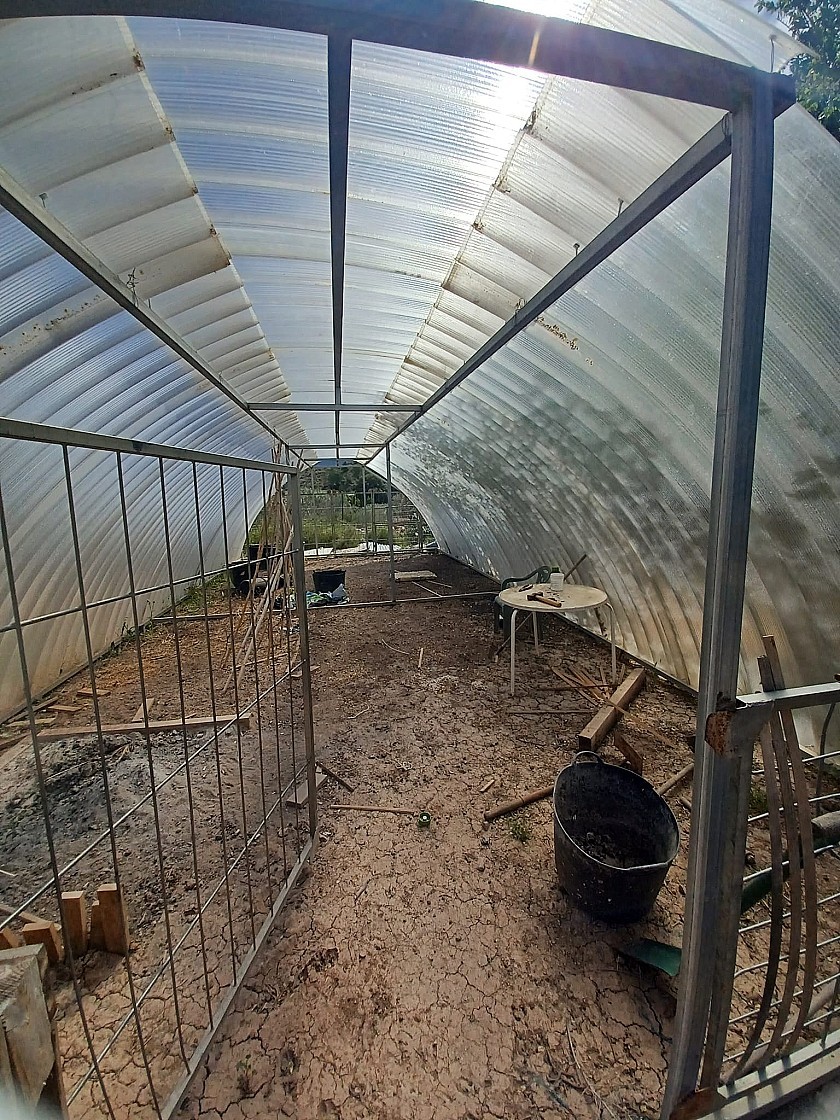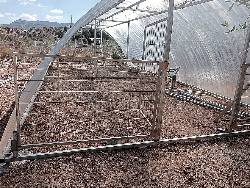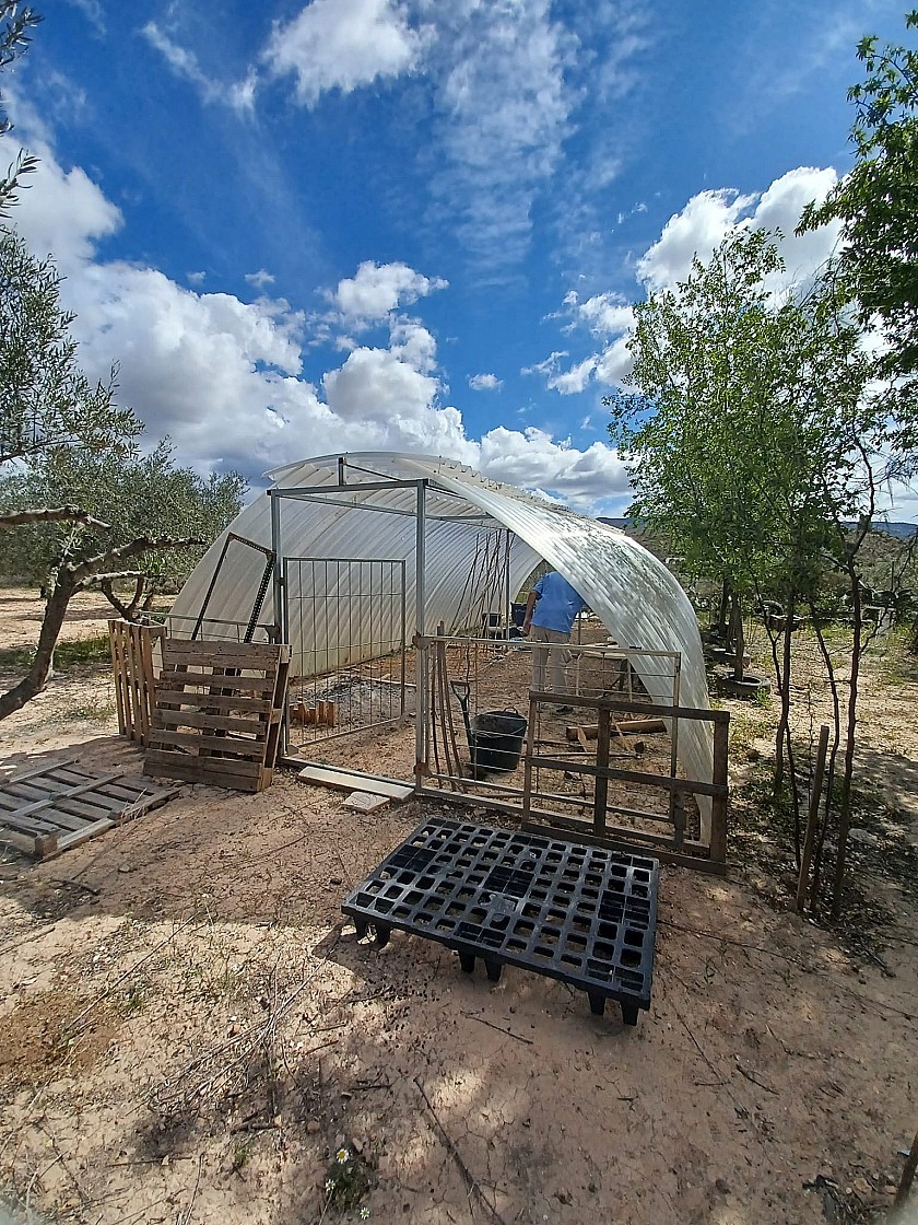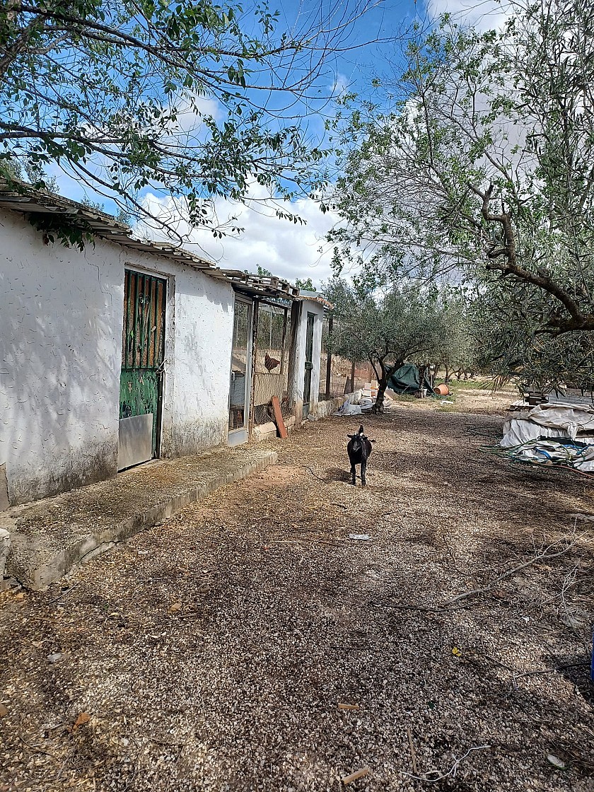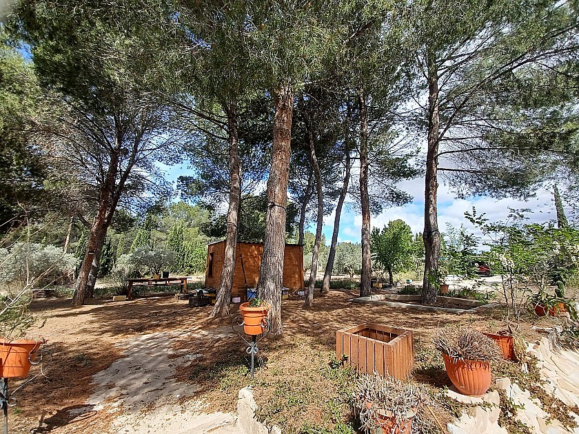 Er zijn twee ingangen naar het terrein voor voertuigen. De tuinen zijn volgroeid en goed beplant met veel bomen, plus een boomgaard met diverse fruitbomen. Ook aan het einde van de tuin bevindt zich een gebied met vele dierenverblijven, voor kippen, konijnen, eenden, geiten, enz., en een polytunnel van 40 m² voor het verbouwen van groenten.