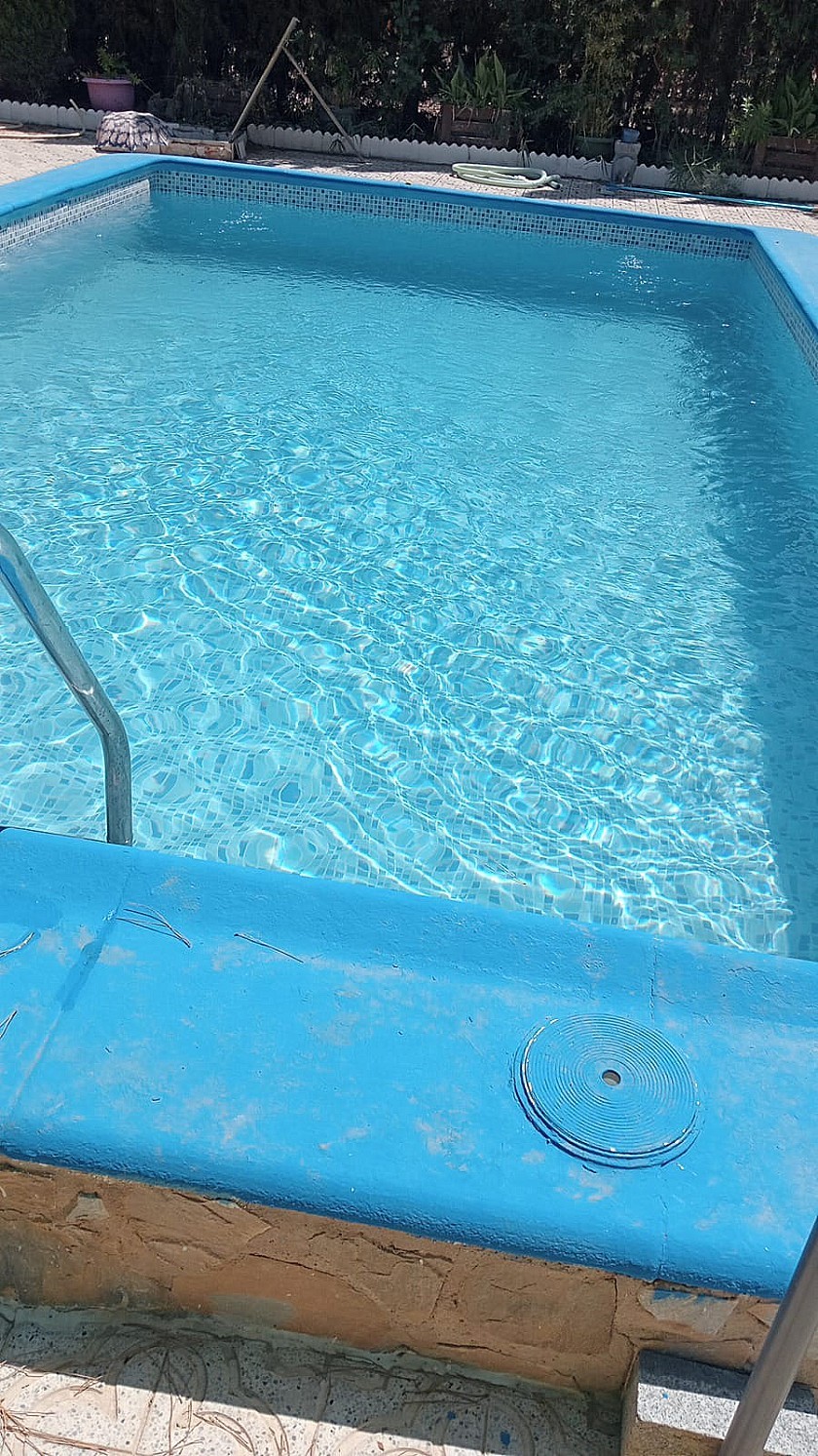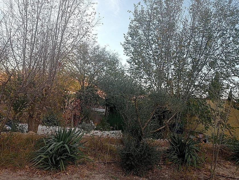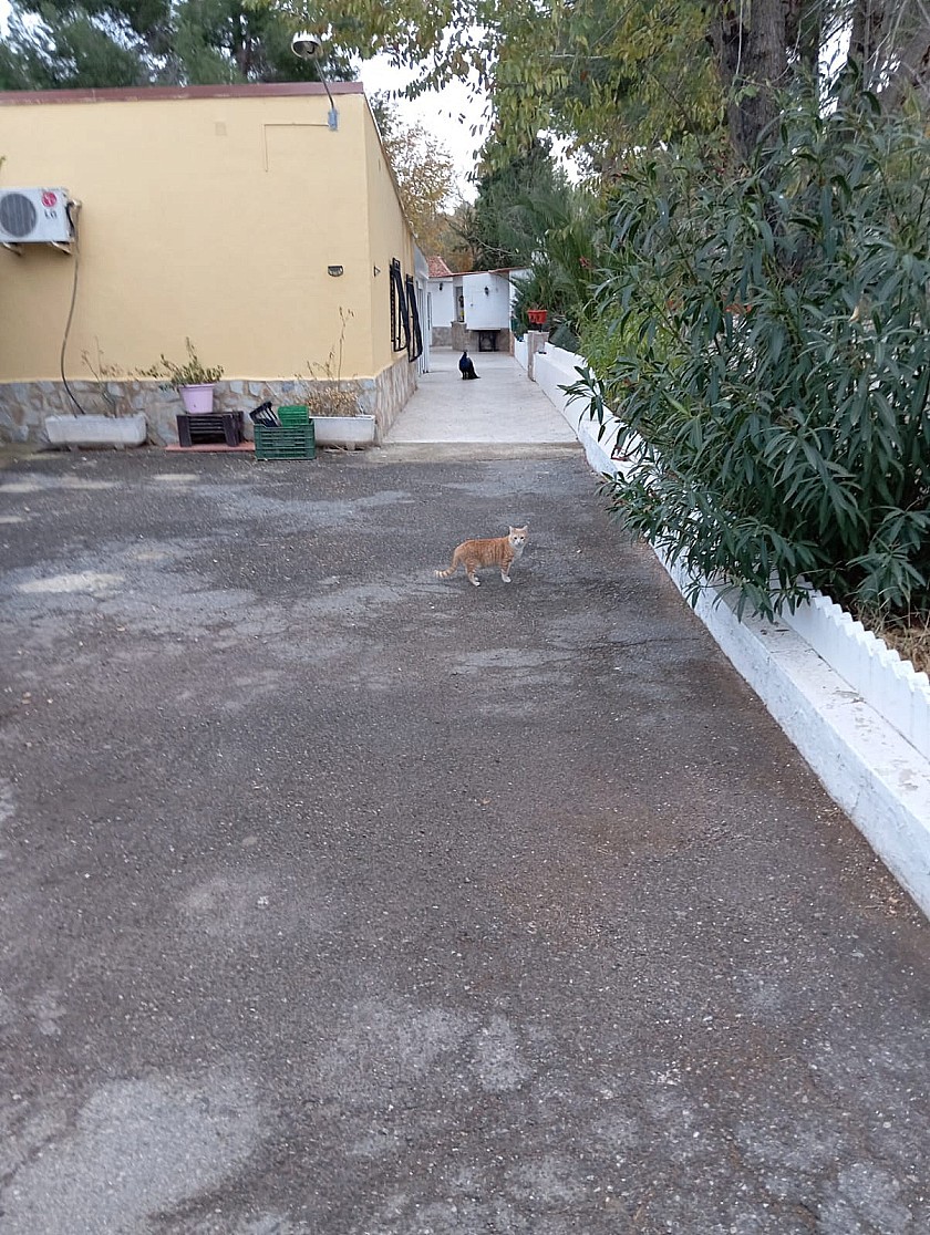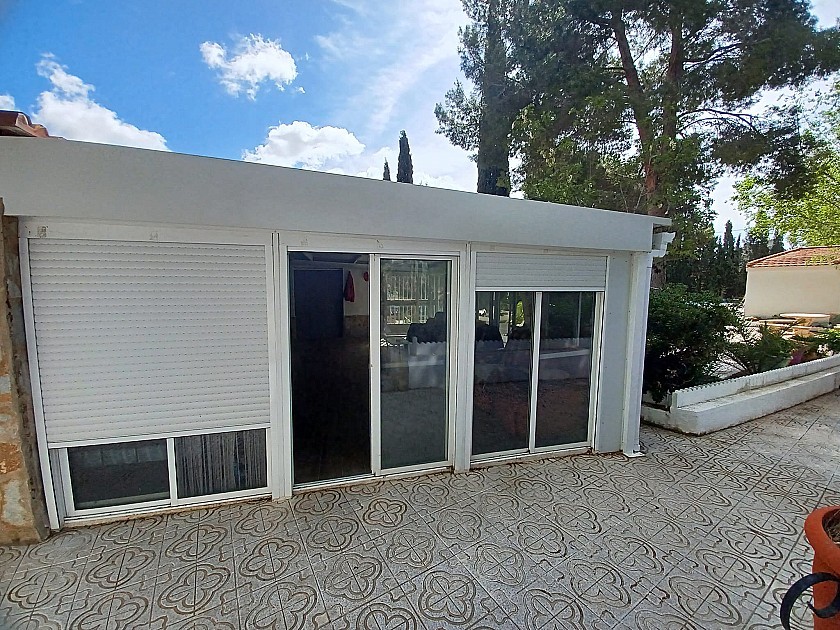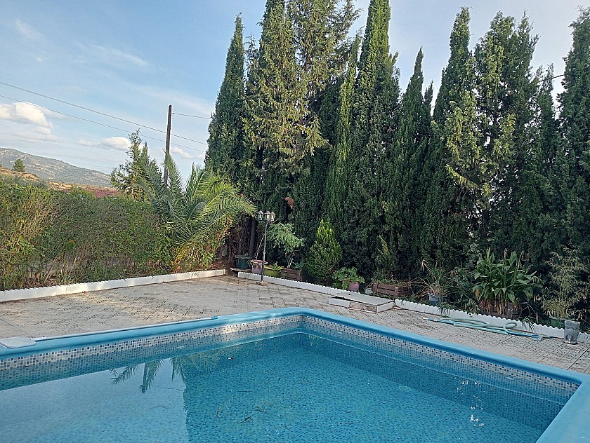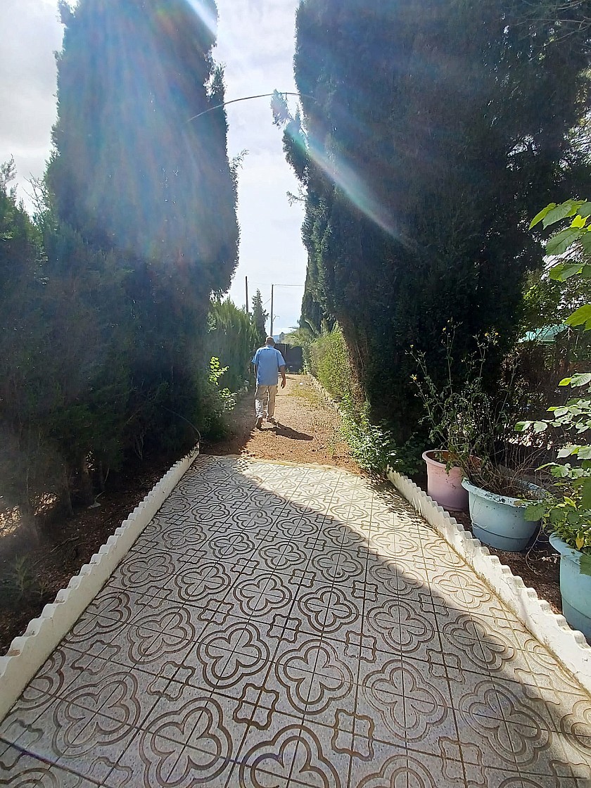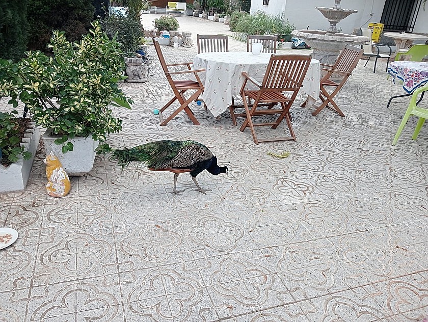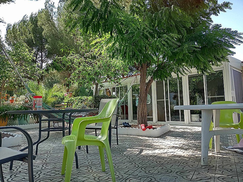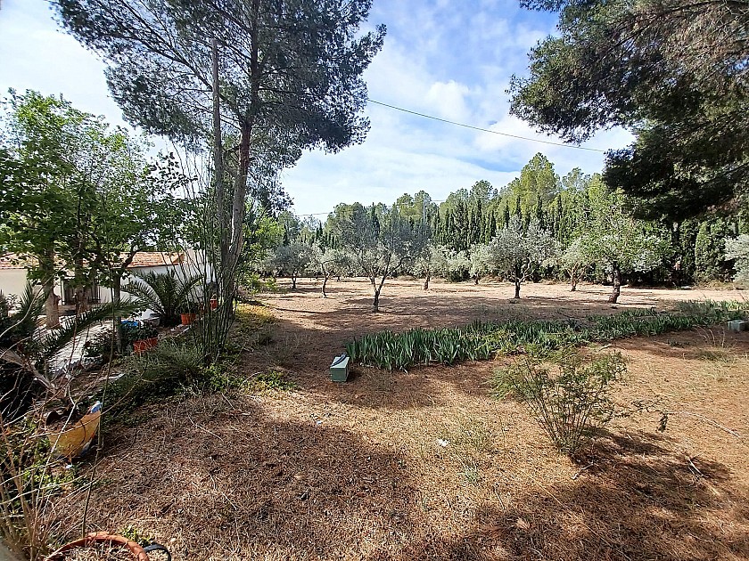 U komt binnen via een met bomen omzoomde oprit en vindt het huis omringd door tuinen. Een groot terras en een zwembad van 8 x 4 m bevinden zich voor het huis, met een buitenkeuken, barbecue, kleine vijver, volière en casita. Er zijn twee houten hutten in de tuin en een derde aan het huis vast voor opslag.